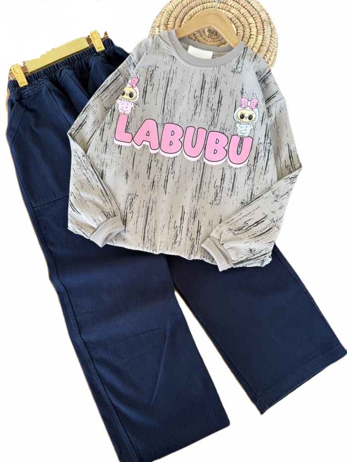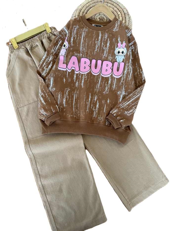 - بلوز و شلوار بیرونی دخترانه لبوبو پابیواه صورتی