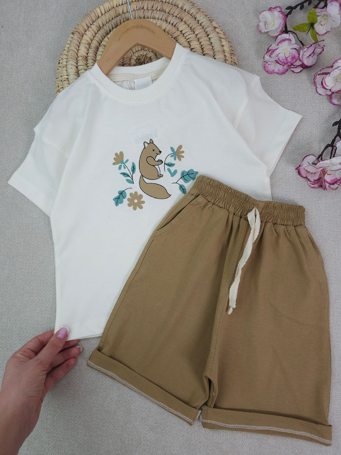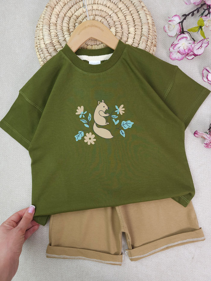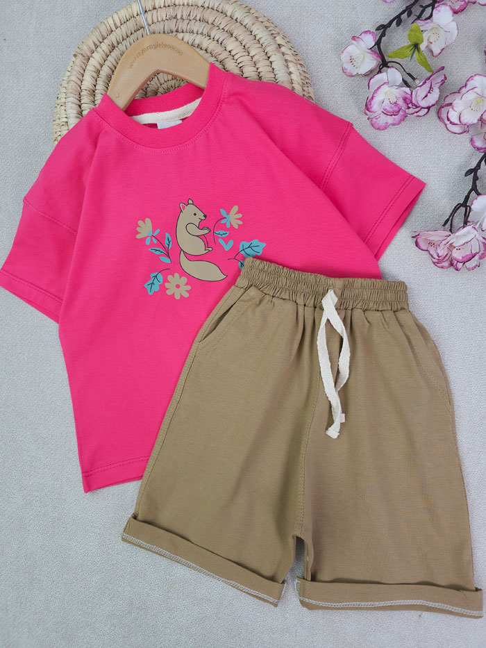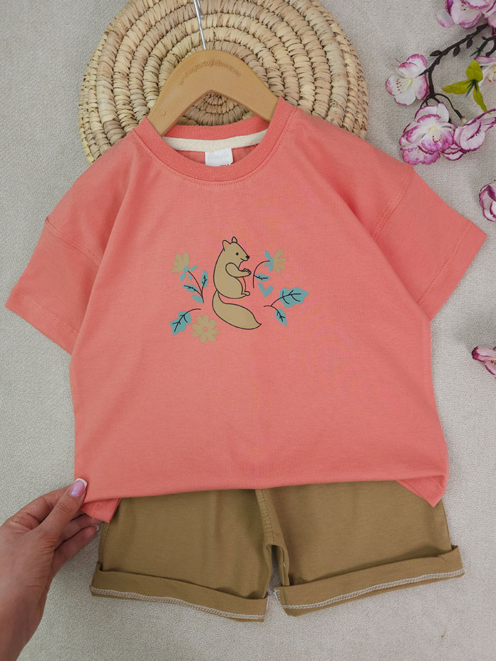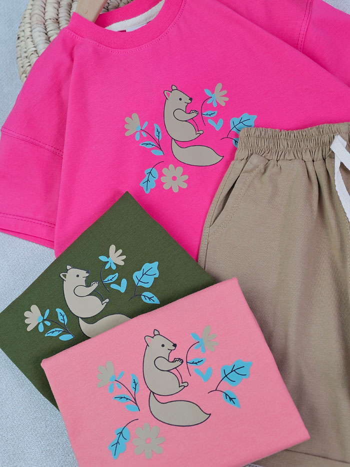 تسشتر و شلوارک دخترانه گل و سنجاب