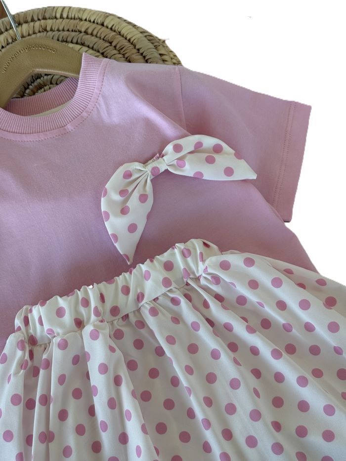 - تیشرت و دامن دخترانه پاپیون خال خالی