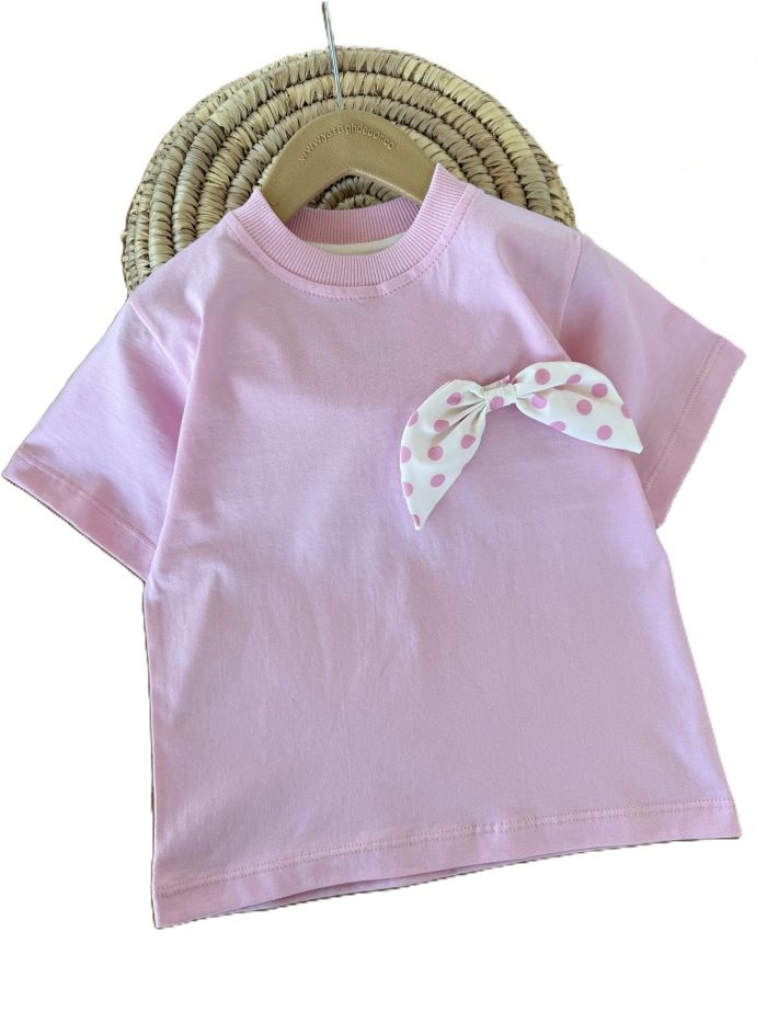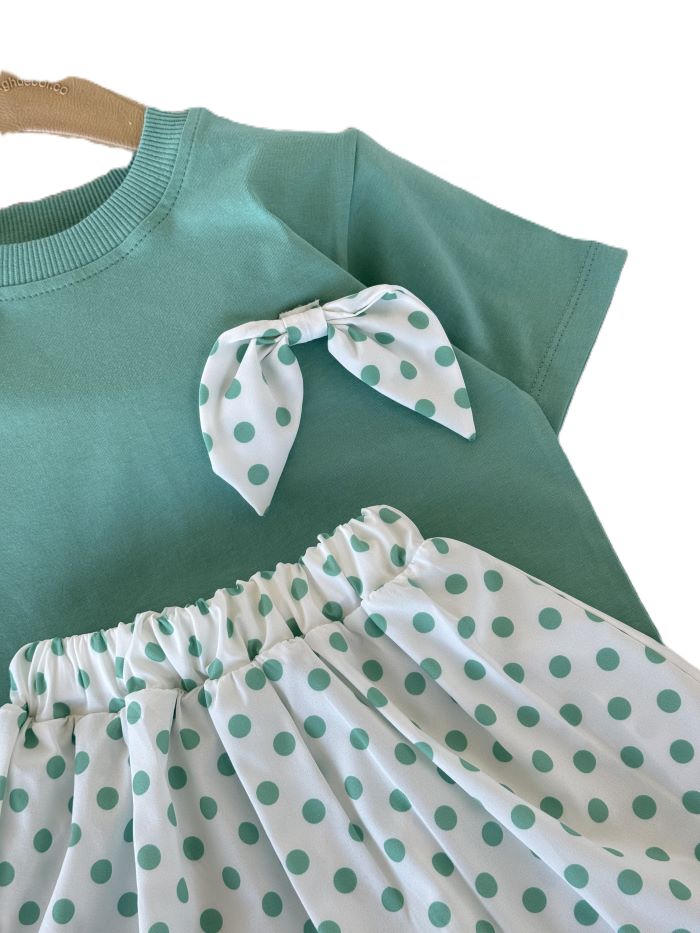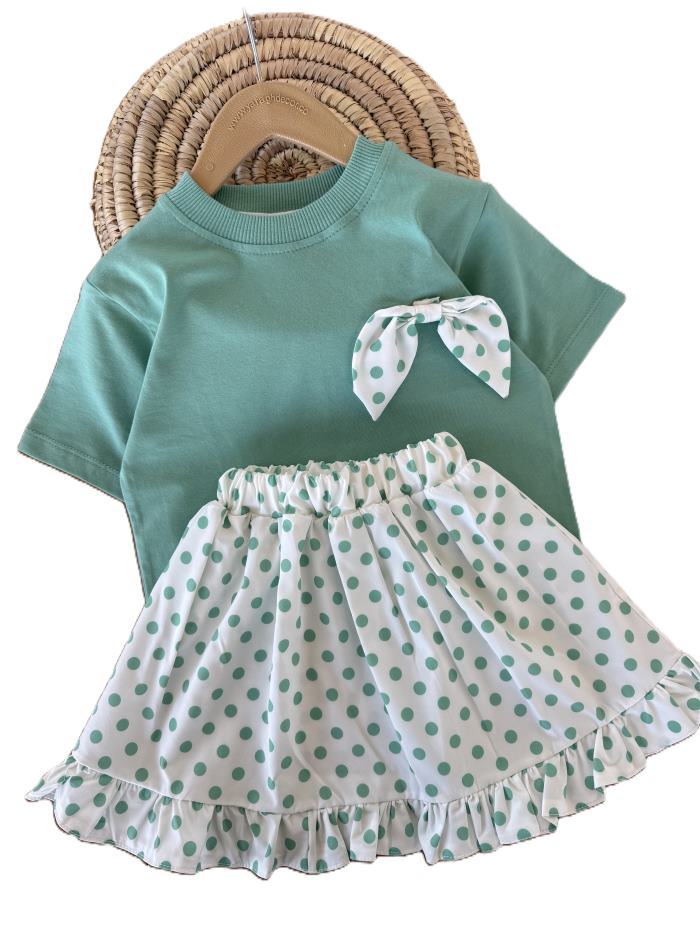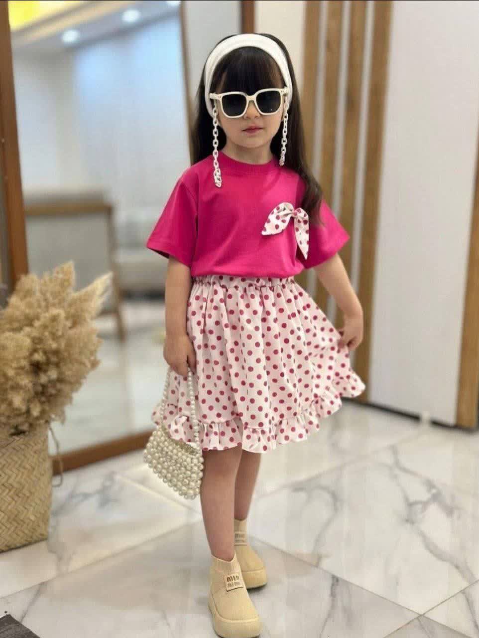 تیشرت و دامن دخترانه پاپیون خال خالی