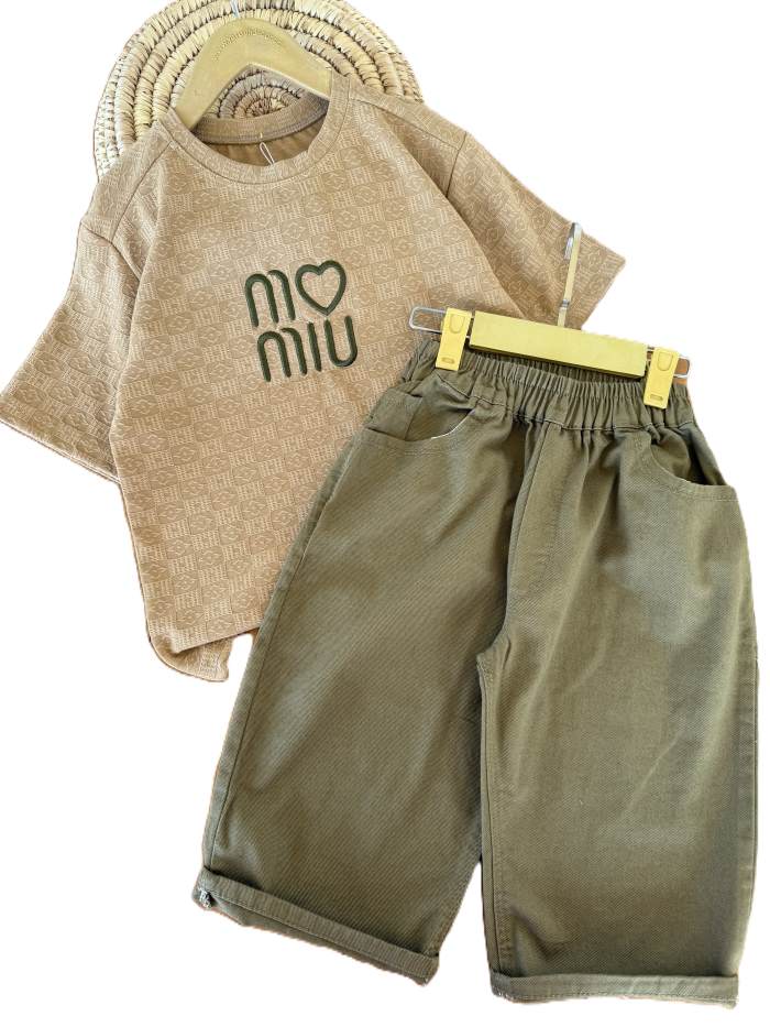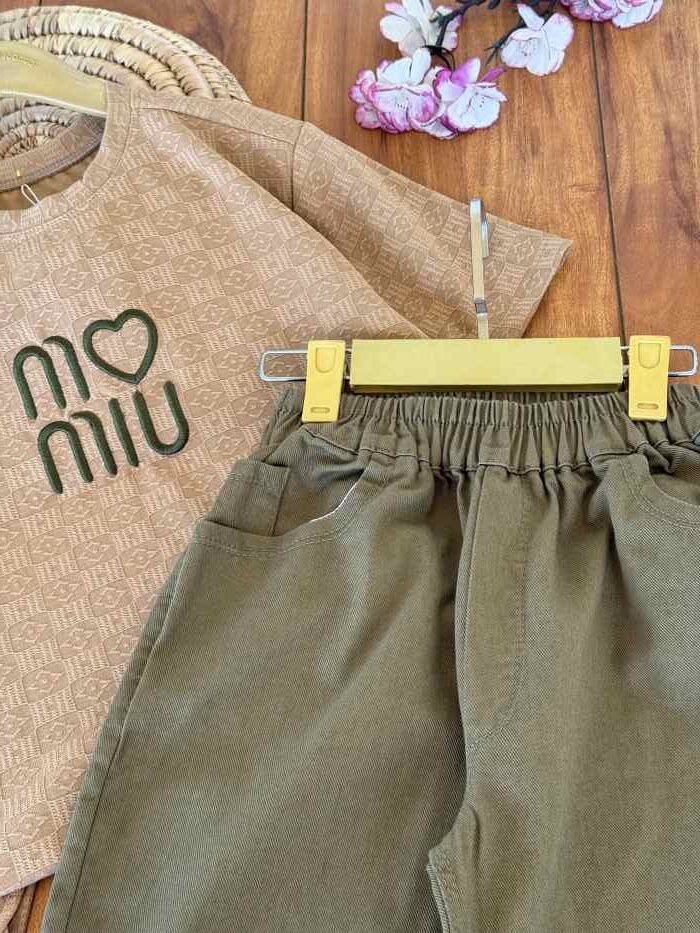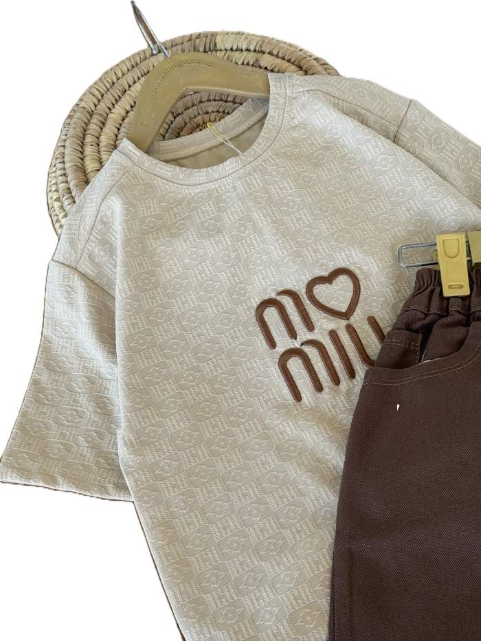 تیشرت و شلوارک بیرونی دخترانه miu قلبی