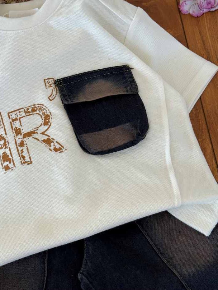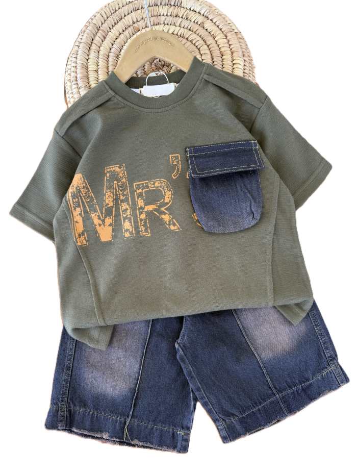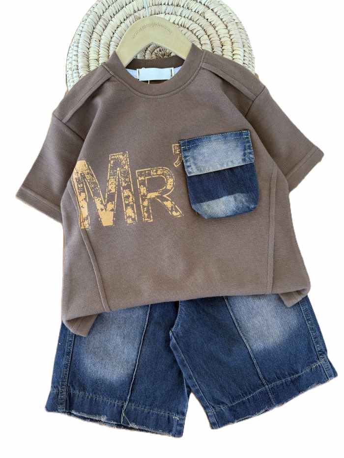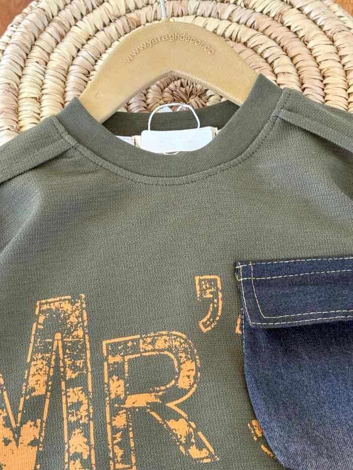 - جنس : تیشرت بیسکویتی شلوارک جین