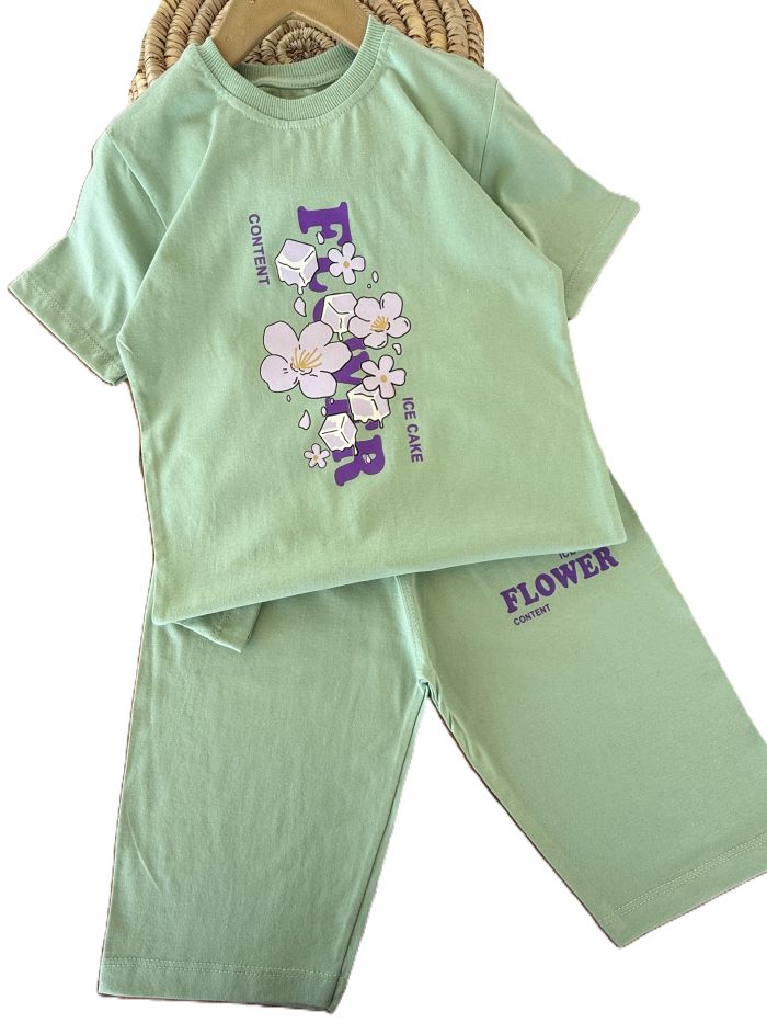 تیشرت و شلوارک راحتی دخترانه گل یخ