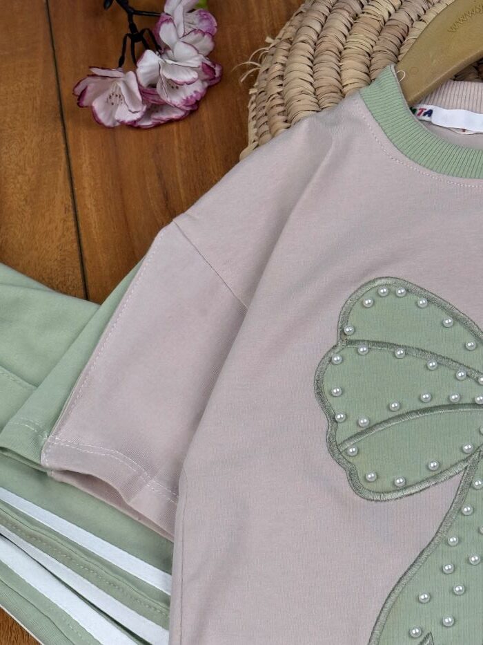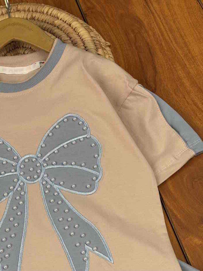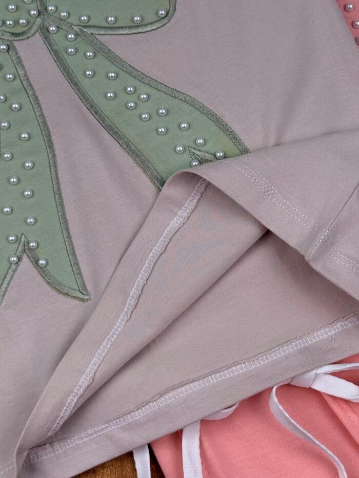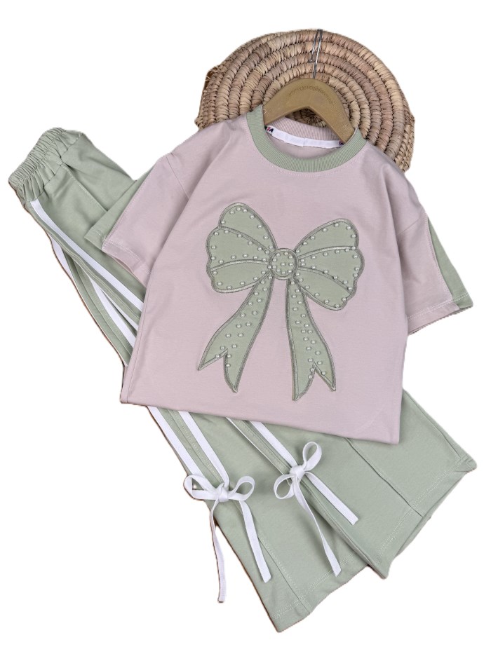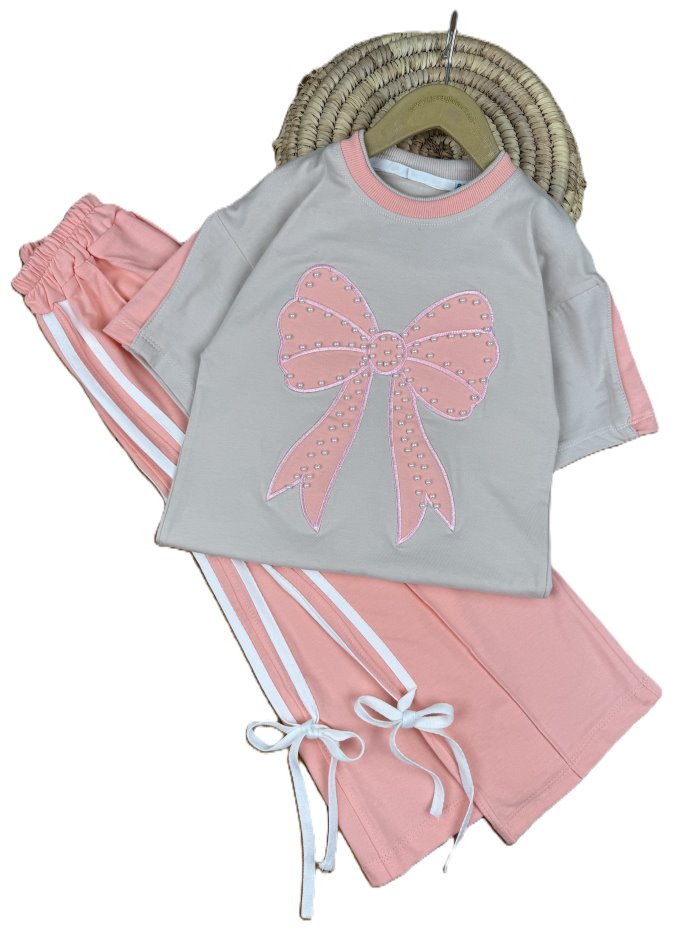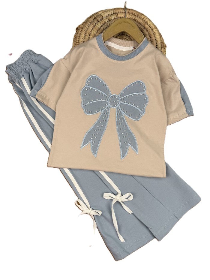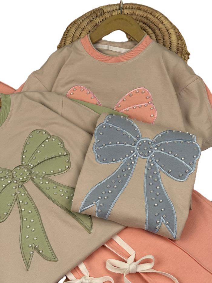 تیشرت و شلوار دخترانه راحتی پاپیون مرواریدی