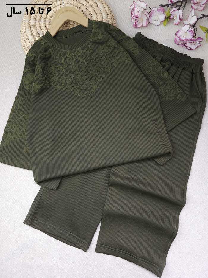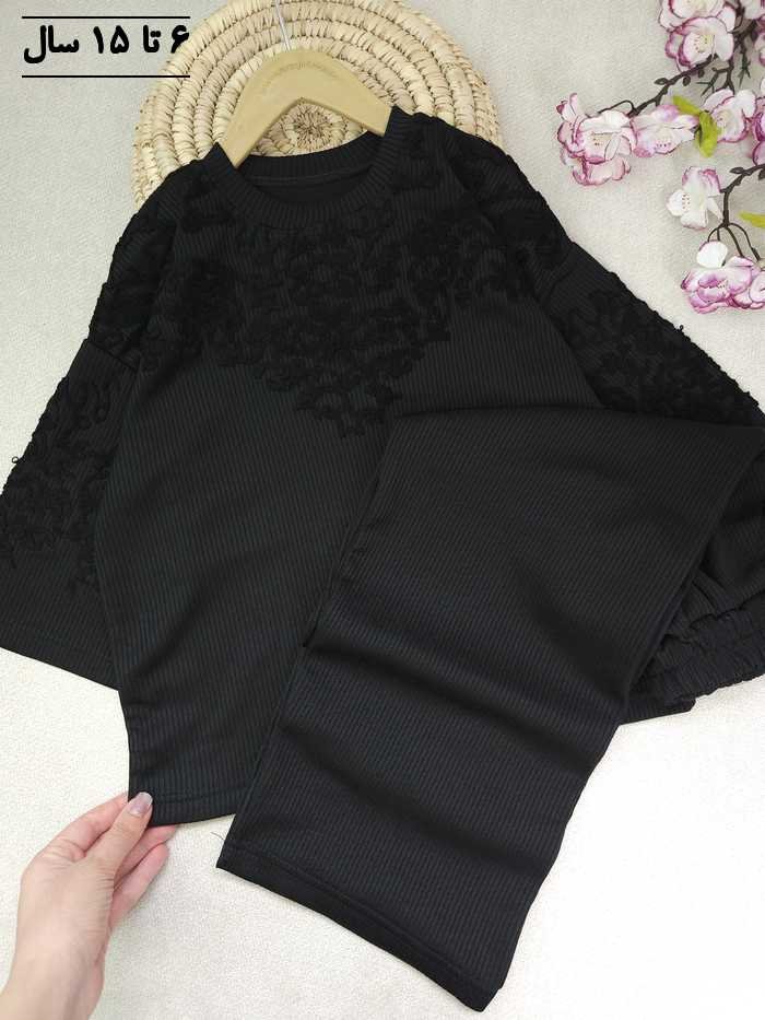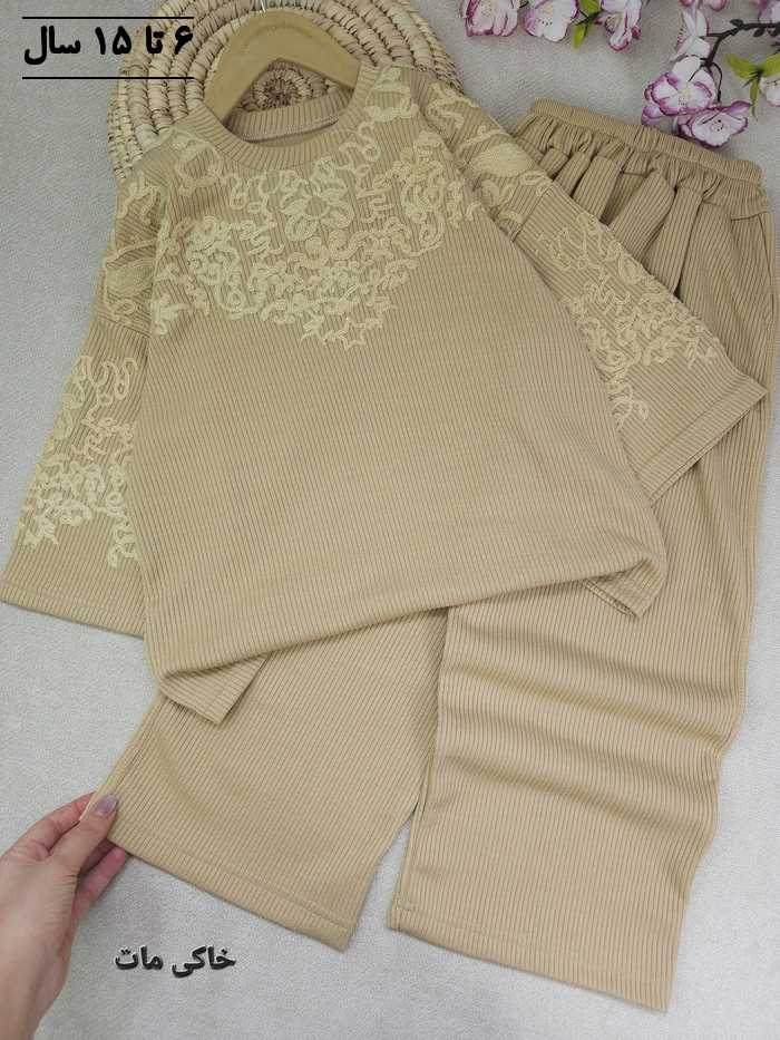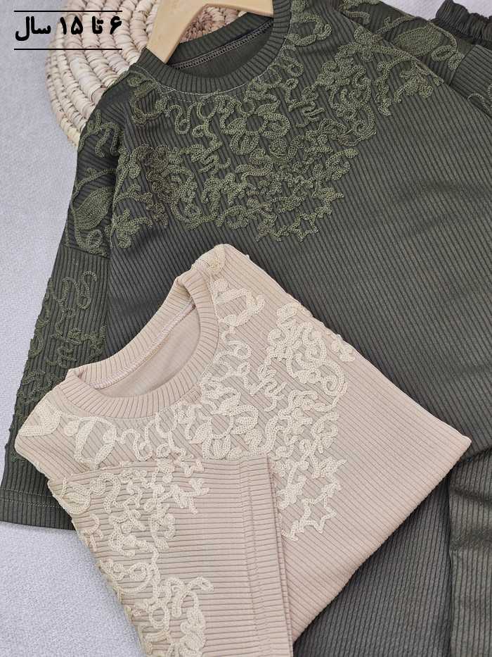 ست تیشرت و شلوار دخترانه گلدوزی – شیک، باکیفیت و مناسب سنین 6 تا 15 سال