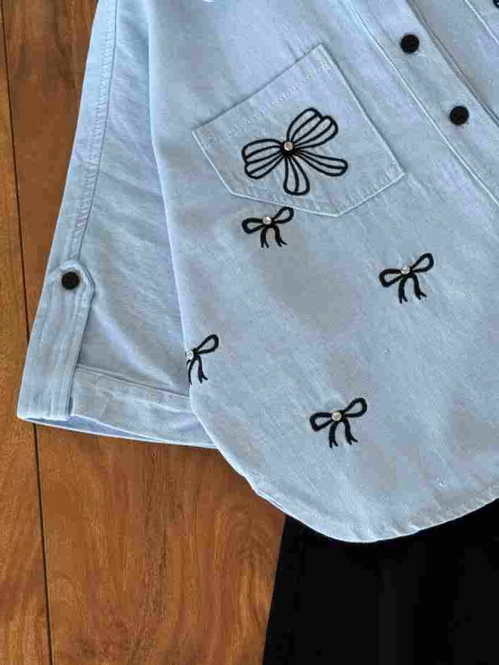 • ست شومیز و شلوارک بیرونی دخترانه پاپیون