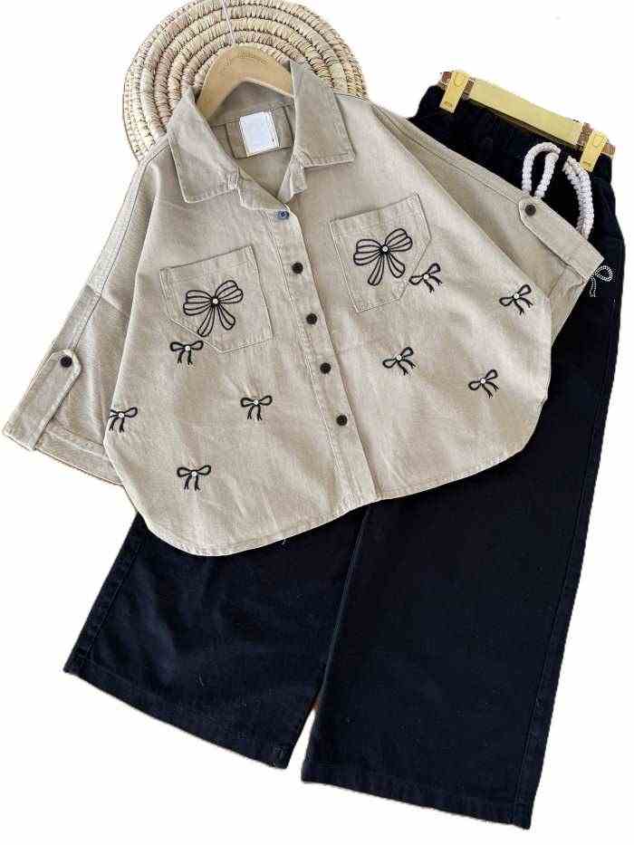 ست شومیز و شلوارک بیرونی دخترانه پاپیون