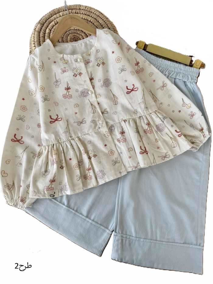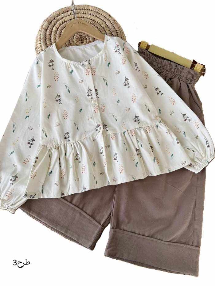 - شومیز شلوار واید دخترانه گلدار