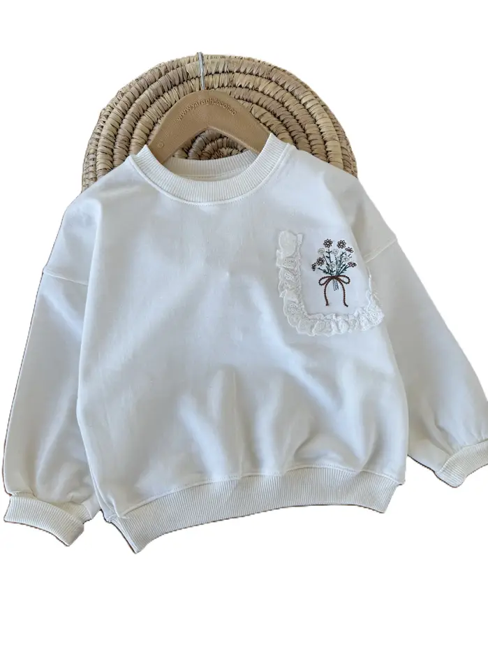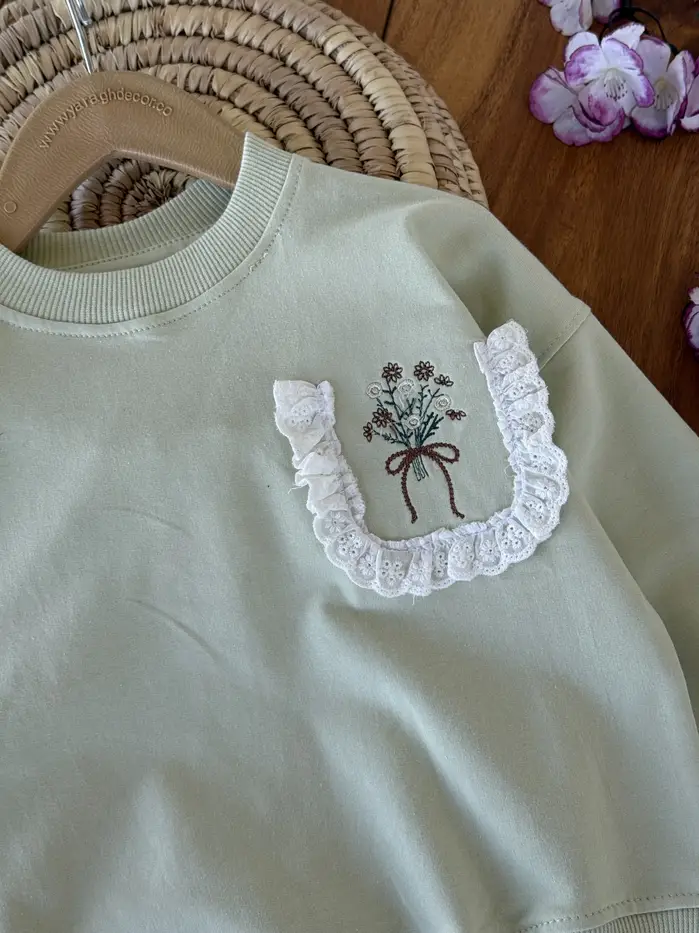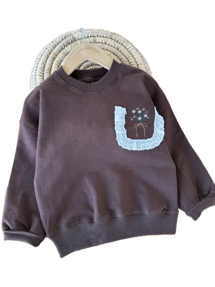کراپ آستین بلند دورس دخترانه طرح جیب خامه دوزی