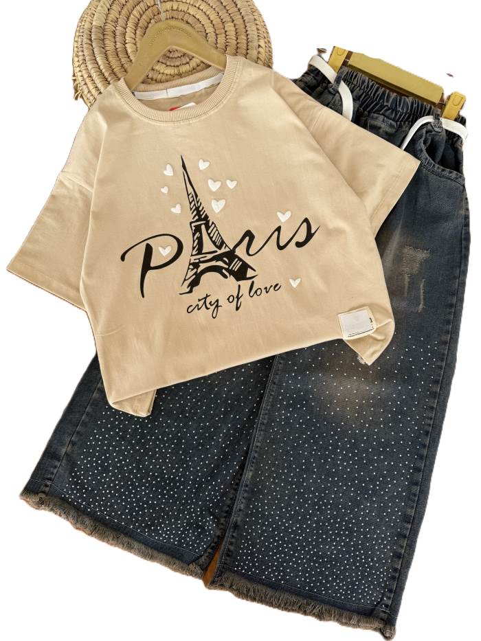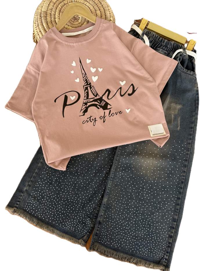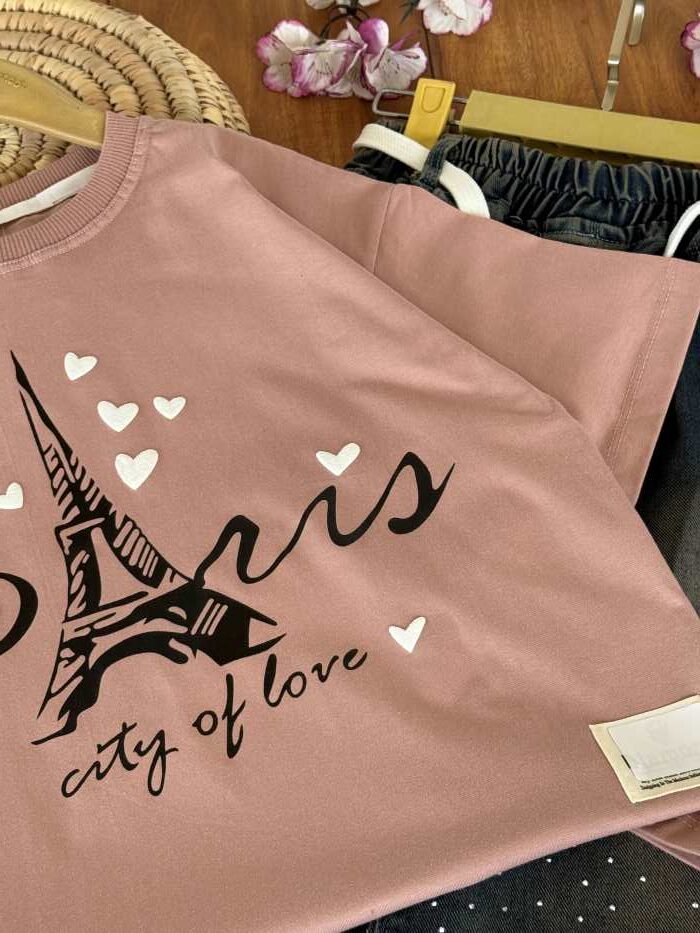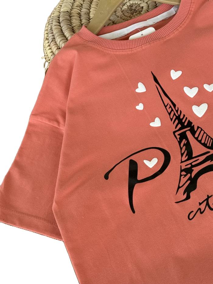 - کراپ و شلوار بیرونی دخترانه قلب سفید