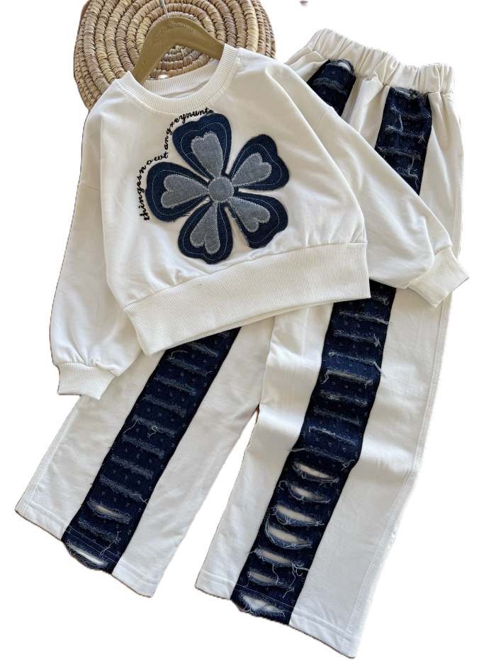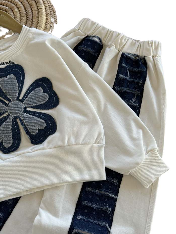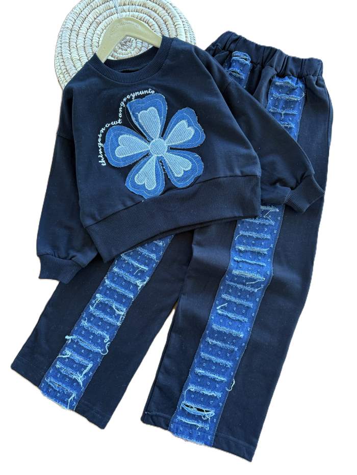 کراپ و شلوار دخترانه تک گل