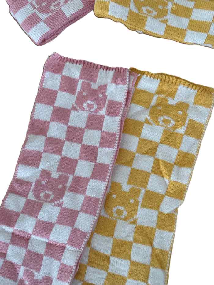 - کلاه و شالگردن خرس شطرنجی